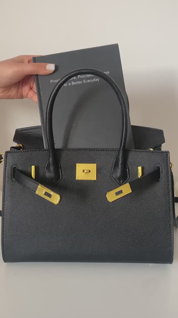 Premium full-grain calfskin leather finished with elegant gold-tone hardware.